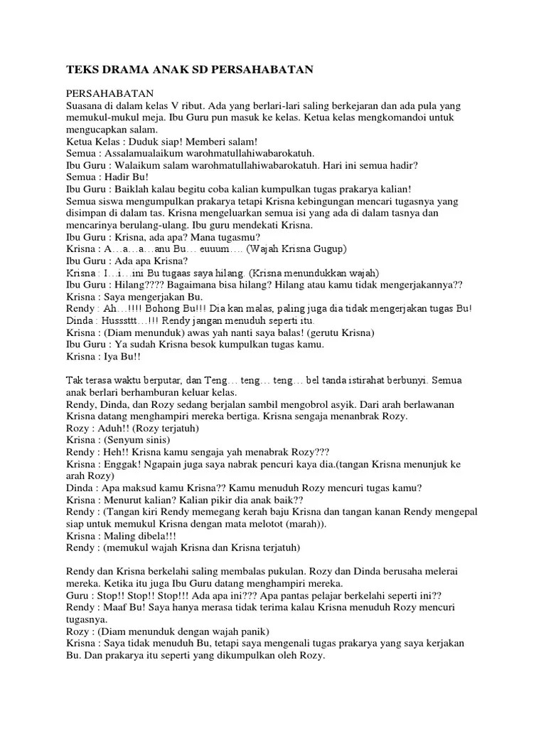 Pada suatu ketika mereka bercanda ria dan bergurau satu sama lain. naskah drama 5 cewek2 cowok found at paybraman1980.pixnet.net. Contoh teks drama 5 orang dgn 1 wanita dan 4 laki laki.rar. Contoh naskah drama singkat 4 orang tema persahabatan. Itulah yang dapat kami bagikan terkait naskah drama 3 orang perempuan dan 2 orang laki laki. Berikut informasi sepenuhnya tentang naskah drama 3 orang laki laki. naskah drama pesantren rock n roll; 3 contoh dialog percakapan antara 5 orang bahasa inggris beserta artinya. naskah drama persahabatan yang hancur karena cinta; Contoh naskah drama panjang 6 orang pemain tentang pesan moral. Scribd is the world s largest social reading and publishing site buku. Of "contoh teks drama anak smp persahabatan 6orang 3 cowok 3 cewek. naskah drama perumpamaan anak yang hilang;
